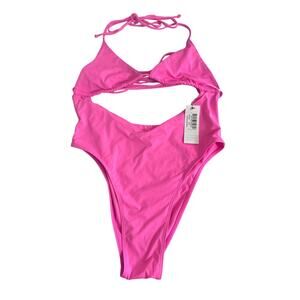 NWT Frankies Bikinis Gemma One Piece Wrap Swimsuit Knockout Pink Size S