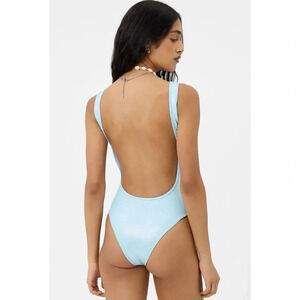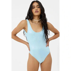 NWT Frankie's Bikinis Kyle Iridescent One Piece Swim suit Cloud Chase Blue