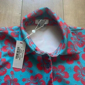 NWT Frankie’s Bikinis Nova Terry Floral Long Sleeve Button Up Blue Magic Sz S