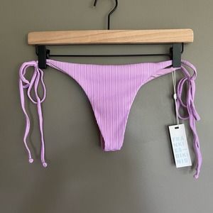 NEW Frankie's Bikinis Sky Plisse Bikini Bottom in Wisteria Lilac Size, Size Large, Tie Side