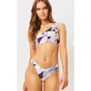 NWT Frankies Bikinis Barb One Shoulder Bikini Top in Patchwork Multi Pattern S