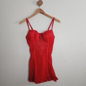 NWT Frederick's of Hollywood Adele Chemise Set Medium | Red Lace & Mesh