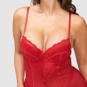 Red Lace Lingerie, Chemise Dress, Teddy, Nightgown, Thong Set, Underwire Lingerie, Frederick's of Hollywood, Date Night, Valentine's Day, Sexy, Swiss Dot