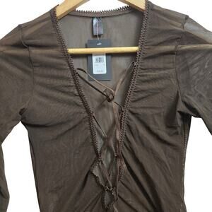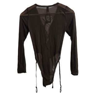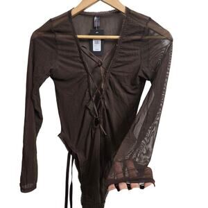 NWT Frederick's of Hollywood Lola Brown Mesh Long-Sleeve Lace-Up Bodysuit Size M