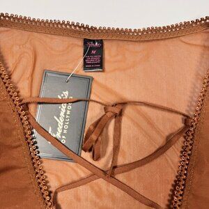 NWT Frederick's of Hollywood Mesh Bodysuit Teddy Sz.M Brown Sheer Garter Sexy