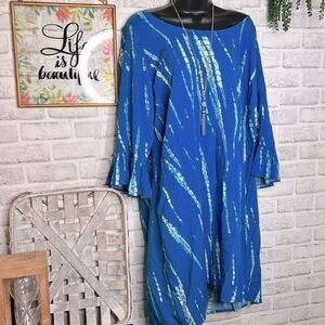 NWT Free 2 Luv Blue Jade Tie Dye Batik Dress Boho Hippie Size 1X