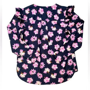 This gorgeous feminine top hits all the latest style notes with a relaxed fit, floral romantic print, and ruffled sleeves.