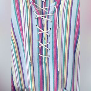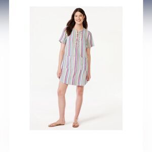 NWT Free Assembly Striped Shift Lace-Up Mini Dress Short Sleeves Size XL