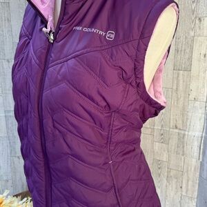 FREE COUNTRY vibrant purple quilted vest reversible light soft purple on the other side sleeveless design, perfect for adding warmth and style to your outfit.
