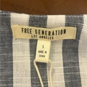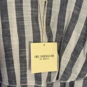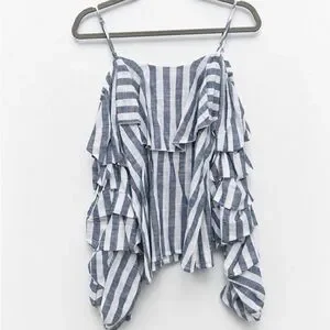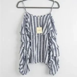 NEW! Free Generation Los Angeles cold shoulder top with a blue and white striped pattern, adjustable spaghetti straps. Size Small