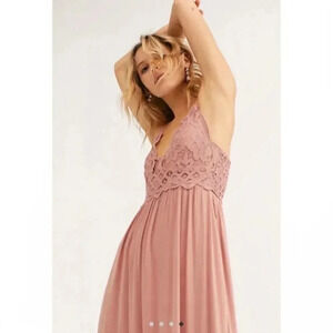 NWT Free People Adella Dress Maxi Long Wedding Guest Lace Rose Pink XS