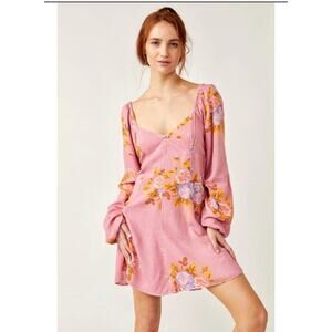 NWT Free People Adella Floral Mini Dress Pink Rose M Boho Cottagecore $128