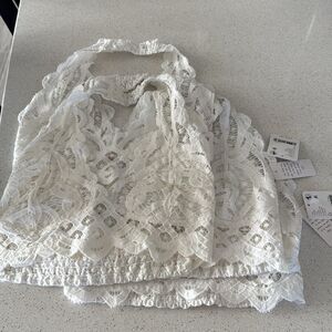 NWT Free People Adella Lace Halter Bralette Lace Scallop Pull- On Backless White