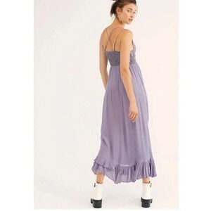 NWT Free People Adella Maxi Slip Dress Long Ruffle Lace Slate Purple Gray XS