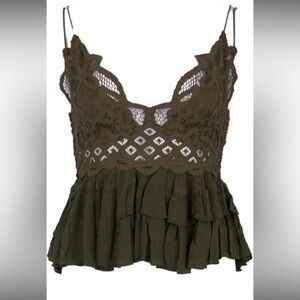 The Free People Adella Cami lends a feminine aesthetic to an alluring silhouette with a lace-trimmed bodice, plunging neckline, scalloped edges, and a tiered peplum hem. Viscose, nylon. Hand wash. Imported.
