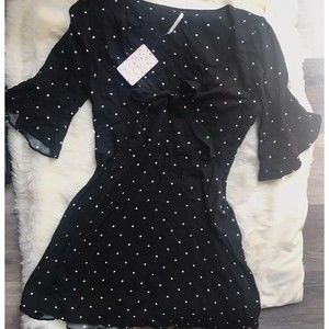NWT. Free People all yours mini dress. Size 2. Sweetly retro, this flattering A-line dress is feminine perfect with its fluttery cuffs and bow-decked plunging neckline. Fit: this style fits true to size. - V-neck - Elbow sleeves - Unlined.