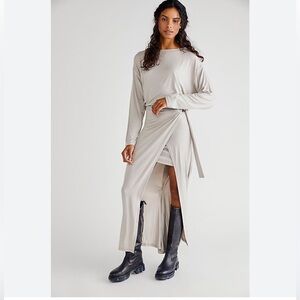 NWT Free People Alyssa Long Sleeve Wrap Dress in Taupe
