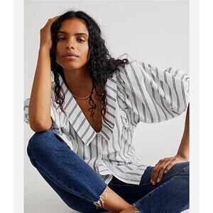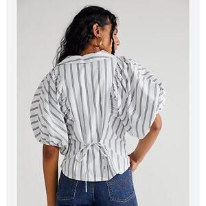 NWT Free People Amara Blouse Boho Bubble Flutter Sleeve XS Button Down