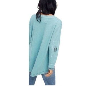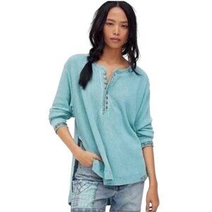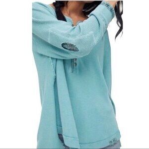 NWT Free People Aqua Henley Distressed Relaxed Fit Thermal