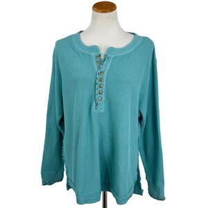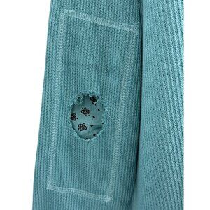 NWT Free People Aqua Henley Distressed Relaxed Thermal | Coastal Boho Grunge M