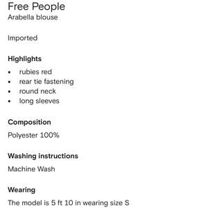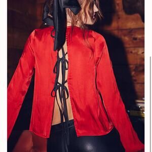 NWT Free People Arabella Satin Rubies Red Tie Back Blouse Sz XS Party Going Out
