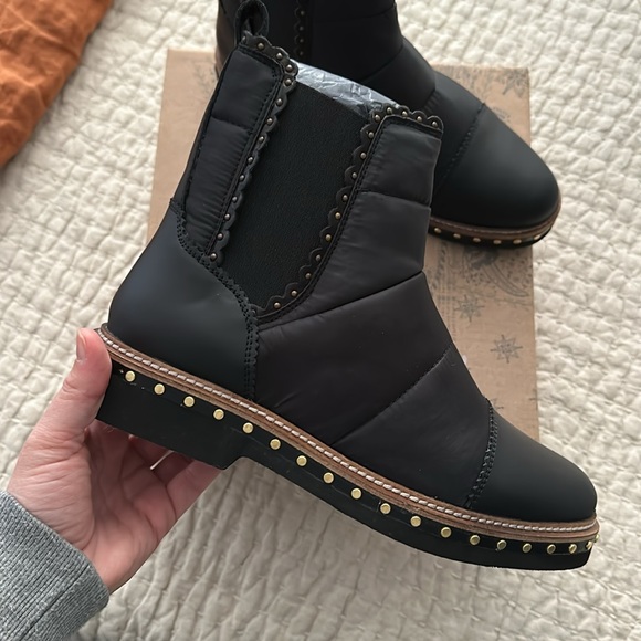 New-in-box Chelsea boots by Free People. Black with puffer and gold stud details. Super cute!