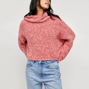 NWT Free People BFF Knit Cowl Neck Sweater In Scarlet Flame Pink