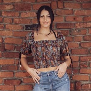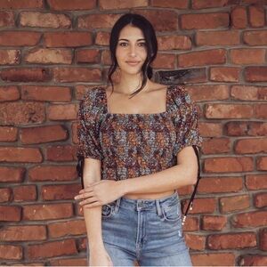 NWT Free People Back On Top Floral Smocked Crop Top Size XS