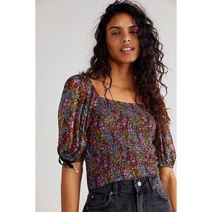 Forever femme in a timeless floral print, this classic top is featured in a square-neck, puffed-sleeve silhouette with smocking at bodice for added shape and dimension.