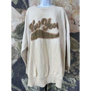 Elevate your sweatshirt collection with this effortlessly cool pullover, featured in a slouchy fit and oversized design with bold beading and embroidered detailing.