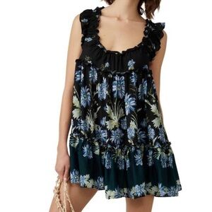 NWT Free People Bali Wild Daisy Printed Mini Ruffle Slip Dress