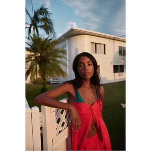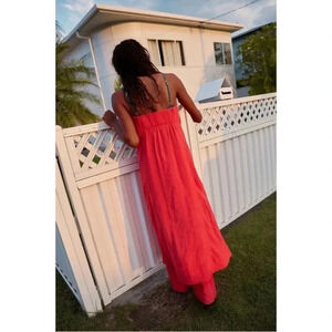 NWT Free People Banita Set Two Piece Linen Pants Maxi Top Tube Red XS