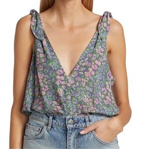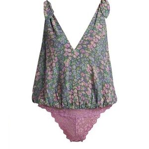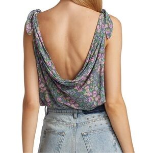 NWT Free People Bare It All Bodysuit Chambray Combo Floral Draped Boho top