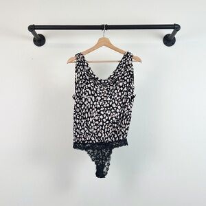 NWT Free People Bare It All Cowl Back Bodysuit In Black Combo Print