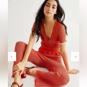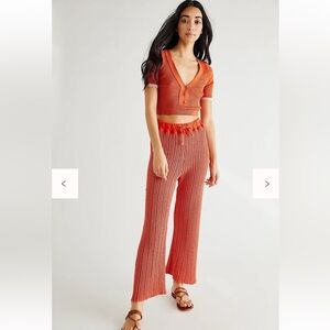 NWT Free People Beach Day Sweater Pants Boho Comfy Cotton Size M Terra Cotta