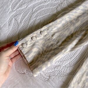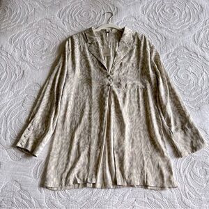 Boho fashion, Oversized shirt, Neutral tones, Modern bohemian, Lightweight top, Effortless style, Relaxed fit blouse, Trendy button-up