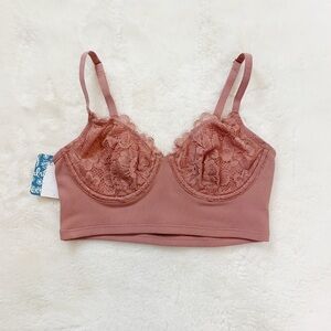 NWT Free People Bianca Lace Longline Underwire Bra In Vintage Rose Pink