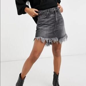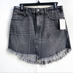NWT Free People Black Raw Hem Bailey Denim Skirt