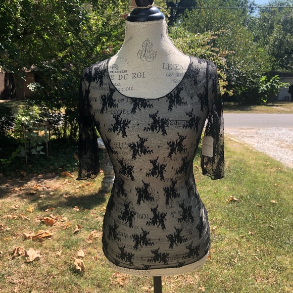 New with tags Free People Layered in Luxe Tee Intimately FP Black Noir Lace Shirt Size Medium. Never worn only tried on. Layering t-shirt. Has elbow length sleeves. It is a stretchy fabric. Seems to run a little small for a Medium, maybe more like a small. The lace is really pretty.