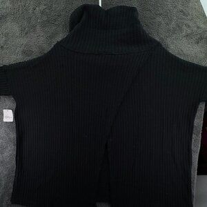 NWT Free People Black Sweater Wrap Medium Oversized Cotton Textured Cowl Neck