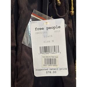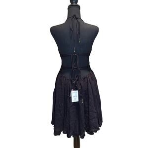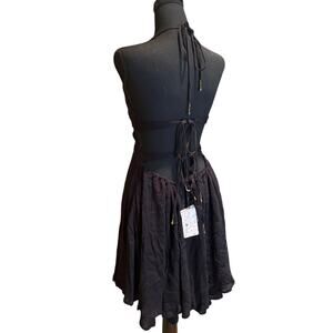 NWT Free People Black Tie-Back Deep V-Neck Cotton Dress, Size Medium