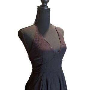NWT Free People Black Tie-Back Deep V-Neck Cotton Dress, Size Medium