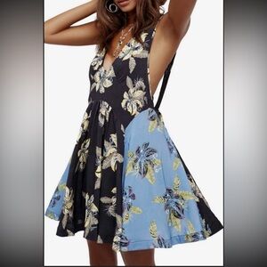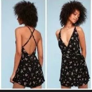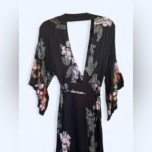 NWT Free People Black floral embroidered cocktail hour wrap dress