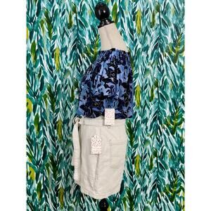 NWT Free People Blue Black Dark Combo Technicolor Floral Smocked Bubble Top Boho