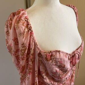 NWT - Free People Boho Hilary Pink Floral Smocked Cropped Top with Tie, Size L