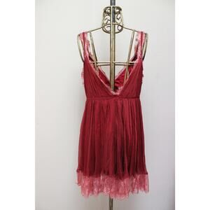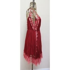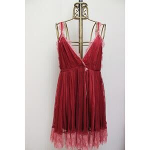 NWT Free People Brenda Knight Marilyn Red Lace Sheer Dress Size Large