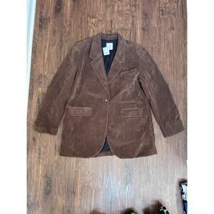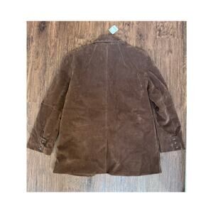Stylish brown faux suede blazer. Single button closure. Classic lapel design. Perfect for layering.
