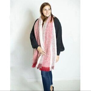 NWT Free People Brushed Racer-Stripe Blanket Scarf Color Red Combo Size One Siz
