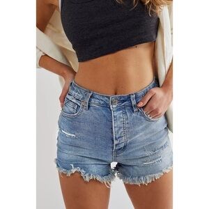 NWT Free People CRVY Vintage High-Rise Denim Shorts in New Hightide Blue size 31