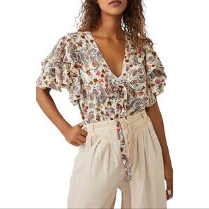 NWT Free People Call Me Later Print Tie Neck Bodysuit in sweet combo size small.